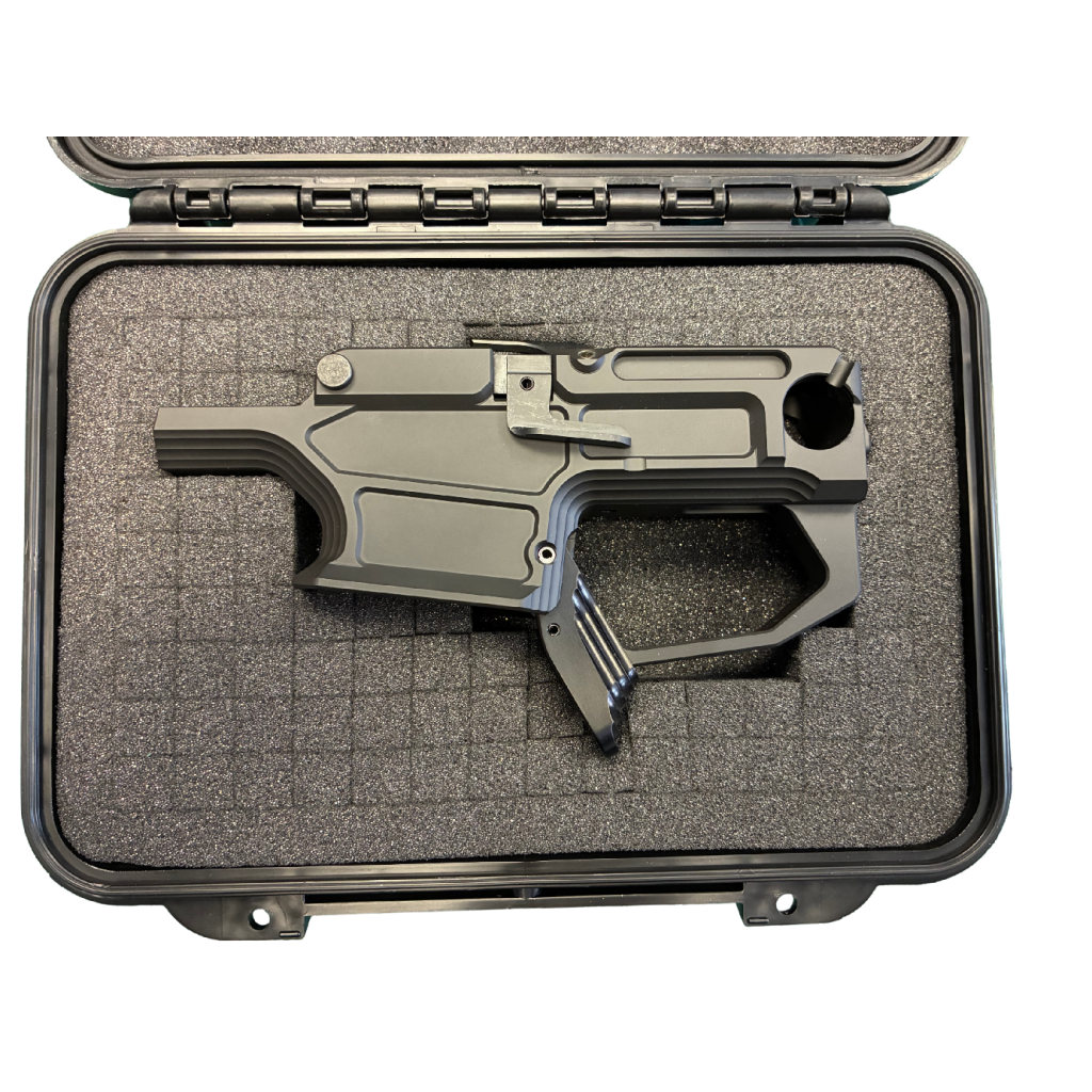 The aluminum trigger housing assembly weighs 240 g. We’ve chosen Cerakote in Armor Black as the surface finish. Other Cerakote colors are available upon request. The product comes packaged in a padded IP67-rated plastic case, which can later be used for a small pistol or other gear.